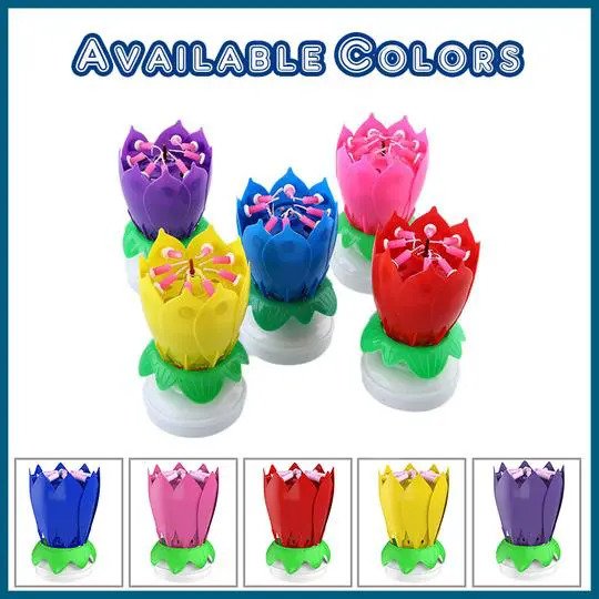 Rotating Lotus Surprise Candle has COLORFUL PETALS making it EXTRA SPECIAL and BRIGHT to the EYES. It is VERY EASY to USE. Just DIRECTLY LIT the CENTER and LET the LOTUS FLOWER BLOOM. If you want to STOP the music just CUT the COPPER WIRE. It is PERFECT as a BIRTHDAY SURPRISE.