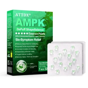 ATTDX® AMPK DePuff ShapeBalance Essence Pearls are an advanced nutraceutical solution designed to help reduce puffiness, support metabolic balance, and enhance your body silhouette – all without stimulants. Powered by the AMPK Fucoxanthin BioActivation Formula, these pearls offer targeted support for: