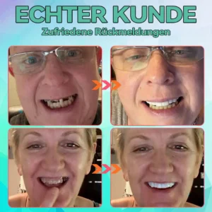 “Ich habe jahrzehntelang geraucht und mit der Zeit hat das meinen Zähnen geschadet. Ich habe mehrere verloren und die Karies hat das Essen und sogar das Lächeln schmerzhaft gemacht. Regelmäßige Zahnarztbesuche waren einfach zu teuer, also habe ich mir dieses Zahnersatzset zugelegt. Es ist ein wahrer Segen! Es sitzt bequem und ich kann endlich ohne Schmerzen essen. Außerdem ist es im Vergleich zu einer Zahnbehandlung erschwinglich. Ich wünschte, ich hätte das früher gemacht – es hat meine Lebensqualität wirklich verbessert.” – Maximilian Müller
