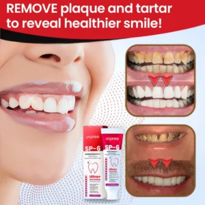 • [BUILDING ATTRACTION]: Unpree™ SP-6 helps you eliminate 98.97% of bacteria in 1 week, immediately eliminate bad breath and toothache, remove plaque and whiten teeth. It completely eliminates various oral problems (including tooth decay, tartar buildup, tooth discoloration, tooth sensitivity, bleeding and swollen gums, mouth ulcers, gingivitis, periodontitis and enamel erosion) within 2 weeks.
