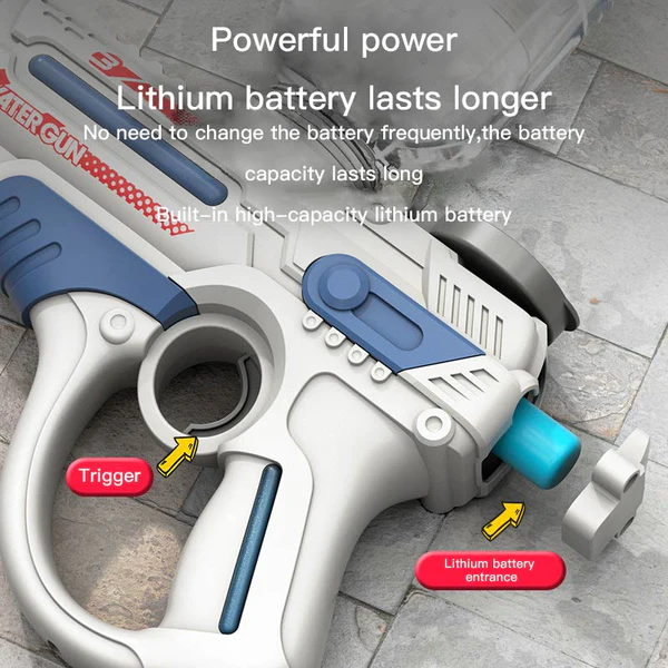 The Space Electric Water Gun is the perfect summer toy for kids to play with in pools, beaches, and outdoor spaces. It’s a wonderful summer gift for children. (Do not submerge the electric water gun in water to avoid damaging the electronic components!)