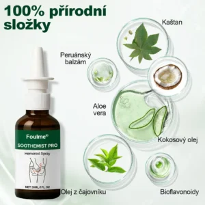 Foulme® SootheMist PRO sprej na hemoroidy využívá vědecky vyvinutý komplex botanických aktivních látek, který kombinuje přírodní bylinné extrakty s přesnou formulační technologií.