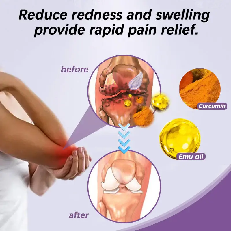 The core component contains curcumin, which has natural anti-inflammatory and antioxidant properties, helping to alleviate joint inflammation and discomfort. - Emu Oil: