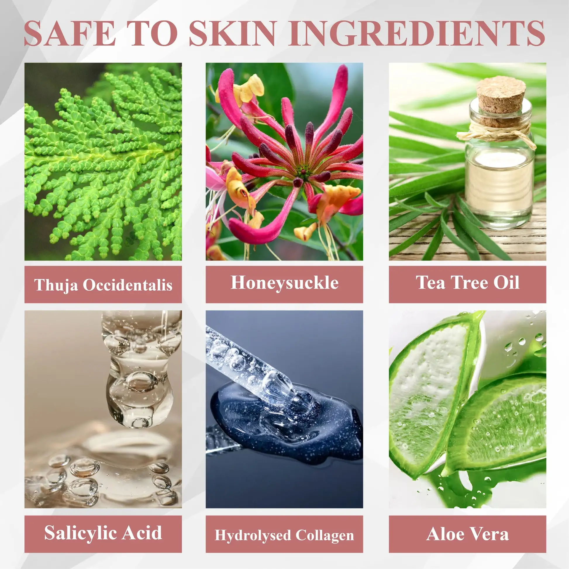This product provides a safe yet non-invasive alternative to more aggressive treatments. By utilizing gentle yet effective ingredients, it supports skin health, promotes clarity, and helps prevent future breakouts and all while minimizing discomfort for users with sensitive skin.