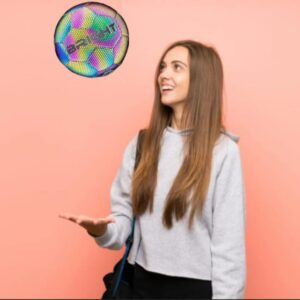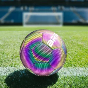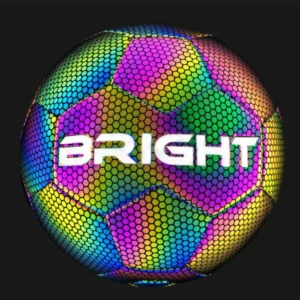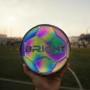 The BRIGHT Football is made of high quality reflective leather with a holographic effect and has the feel and resilience of a normal football. The ball appears black when it is completely dark and no light is shone on it, but when you take a photo/video with a flash, the ball lights up on your phone screen.