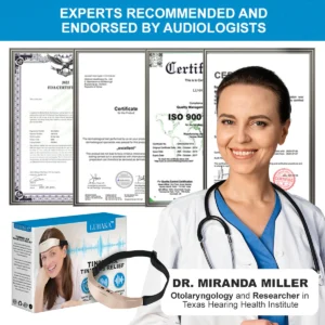 Renowned otolaryngology expert and Texas Hearing Health Institute researcher, Dr. Agatha Miller, describes Luhaka™ Tinnilax Tinnitus Relief as an advanced therapy that delicately stimulates targeted regions of the auditory system. This stimulation helps regulate neural activity, ultimately restoring a harmonious balance within the brain. Dr. Miller’s endorsement further reinforces the innovative and promising aspects of Luhaka™ Tinnilax as a tinnitus relief solution.