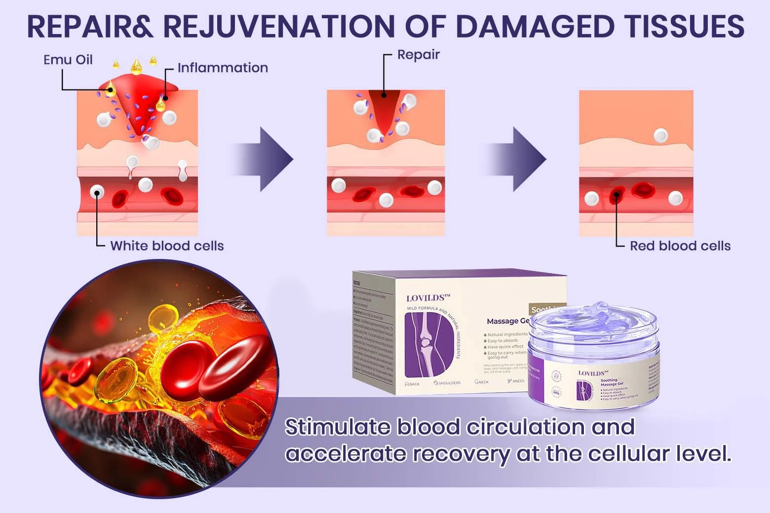 Emu oil promotes healing by deeply nourishing and repairing damaged tissues, cartilage, and bones. It helps stimulate blood flow and accelerate recovery at the cellular level, ensuring that your joints begin to regenerate and regain strength.