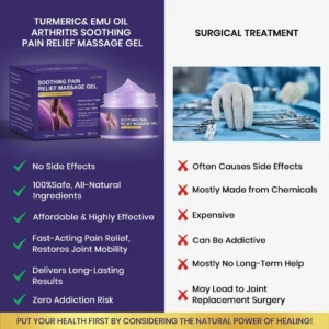 Formulated with natural anti-inflammatory ingredients like organic turmeric and pure emu oil, this gel penetrates deeply to reduce inflammation, lubricate joints, and promote long-term healing. Clinically proven and easy to use, it’s the ultimate solution for arthritis sufferers seeking quick relief and lasting recovery.