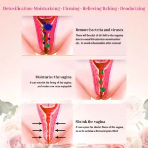 Helps the vagina restore the balance of normal vaginal flora and inhibits the reproduction of harmful flora such as Staphylococcus aureus, Candida albicans, Escherichia coli, and so on. Effectively eliminates vaginal odor and bacterial inflammation. Unblocks the body’s detoxification channels.
